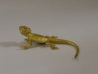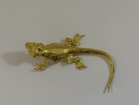 Agama - ještěrka ve zlatém barevném provedení z kovu, délka 17 cm, šířka 10 cm, výška 5 cm, váha 0,25 kg.