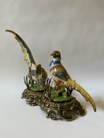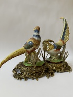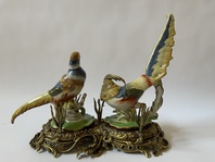 Bažant královský - porcelánové figury v mosazné montáži, výška 32 cm, délka 40 cm, šířka 17 cm, váha 3 kg.
