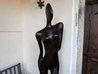 Celobronzová socha moderna - akt ženy, výška 182 cm, šířka 38 cm, průměr soklu 34 cm, váha cca 50 kg, značeno.