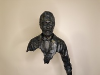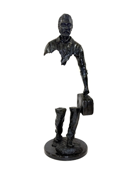 Bronzová socha cestující, výška 80 cm, průměr mramorového soklu 28 cm, váha 10 Kg, luxusní dekorace.