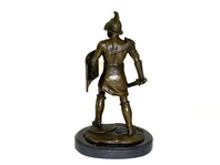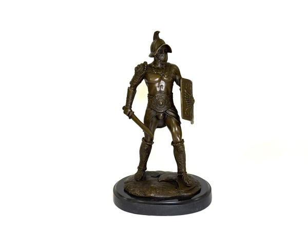 Gladiátor - bronzová socha na mramorovém podstavci, výška 27 cm, mramorový podstavec 16 x 13,5 x 2 cm, váha 2,50 kg, značeno.