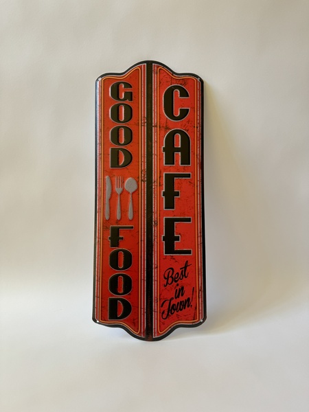 Good food cafe - plechová cedule, 50 x 20 cm, otvory k zavěšení.