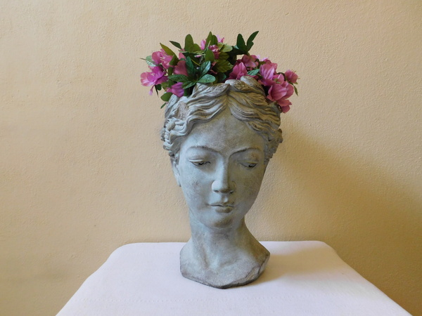 Hlava ženy - keramický obal na květináč v secesním stylu, výška 34 cm, průměr pro květináč 15,5 cm, váha 6,5 kg, květiny nejsou v ceně.