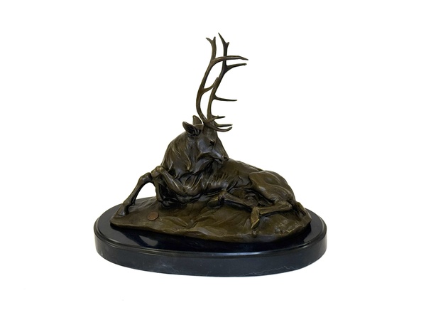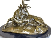Jelen - bronzová socha na mramoru, výška 28 cm, mramorový podstavec 32 x 19 x 3 cm, váha 5,60 kg, značeno.