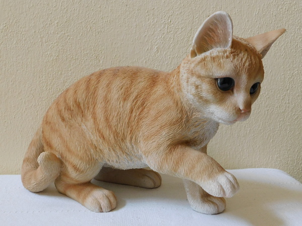 Kočka z polyresinu, výška 23,5 cm, délka 40 cm, váha 1,3 kg, jak živé.