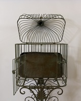 Klec se stojanem z kovu, 122 x 42 x 26 cm, klec 50 x 42 x 26 cm, váha 6 kg.