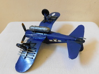 Model letadla vyroben z kovu (plechu) - veterán, délka 25 cm, křídlo 32 cm, váha 0,4 kg.
