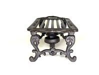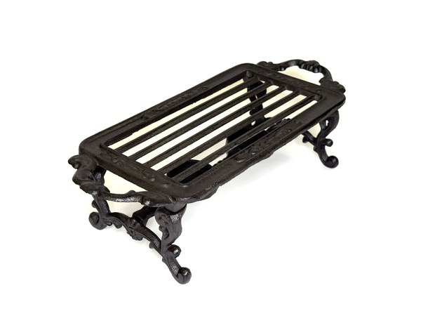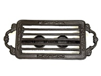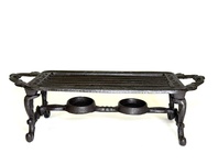 Kovový (litina) ohřívač pokrmů, výška 9,5 cm, délka 32 cm, šířka 14 cm, váha 1,60 kg.