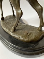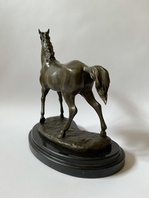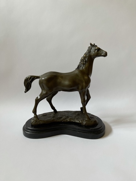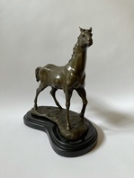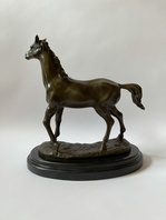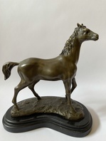 Kůň, bronzová socha na mramoru, výška 30 cm, mramorový podstavec 29 x 16 x 3 cm, 5,50 kg, značeno.