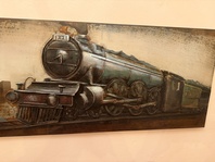 Lokomotiva - plechový obraz, plastický motiv 3 D, výška 56 cm, délka 180 cm, síla 3 cm, váha 4 kg.