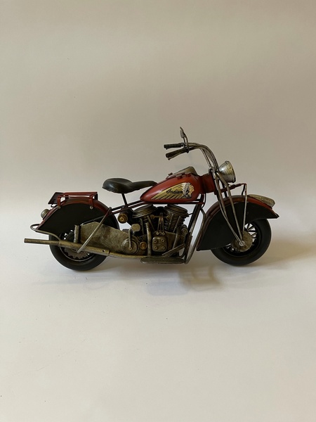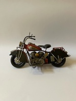 Model motorky vyroben z kovu (plechu) - délka 35 cm, výška 20,5 cm, šířka 13 cm, váha 0,85 kg.