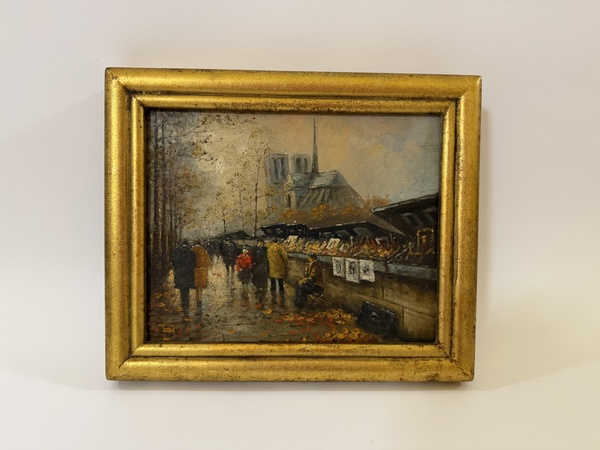Obraz - Paříž - na dřevovláknité desce, ruční práce ve zdobeném zlatém rámu, vč. rámu 31 x 25,5 cm, bez rámu 24,5 x 19 cm, dekorativní obraz v interiéru.