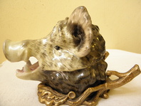 Porcelánová dóza - hlava divočáka - v mosazné montáži, výška 12,3 cm, délka 18 cm, šířka 10 cm, váha 1,25 kg, značeno.