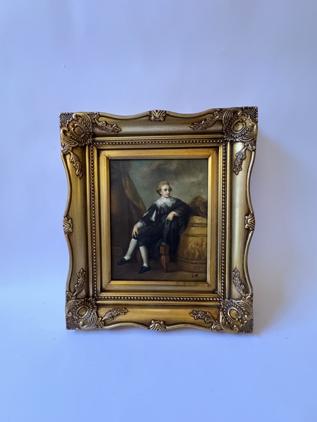 Obraz - portrét šlechtice - na dřevovláknité desce, ruční práce v bohatě zdobeném zlatém rámu (kašírovaná masa polyresin), vč.rámu 40 x 35 cm, bez rámu 24,5 x 19,5 cm, dekorativní obraz v interiéru.