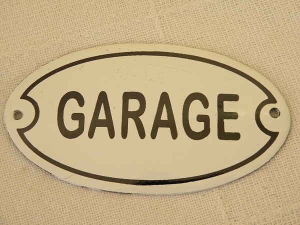 Krásná plechová cedule GARAGE, délka 13,5 cm, výška 7,5 cm, síla 2 mm.