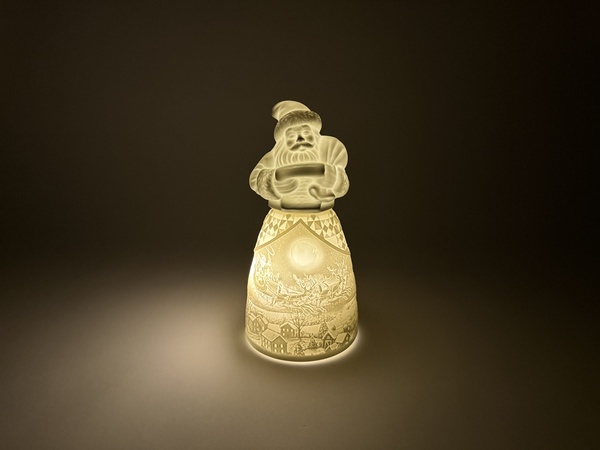 Santa Claus - soška z biskvitu, výška 19 cm, průměr 9 cm, 3 tužkové baterie, nejsou v ceně.