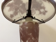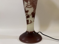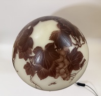 Skleněná lampa ve stylu Galle - hnědá, hrozno. výška 61 cm, průměr 35 cm, průměr soklu 18 cm, délka kabelu 200 cm, váha 3,60 kg, žárovky 2 x 40 W.