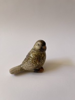 Soška ptáčka z keramiky, výška 7 cm, šířka 4,5 cm.