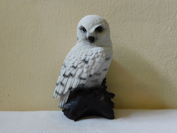 Sova sněžná z polyresinu, výška 22,5 cm, váha 1,20 kg, jak živé.