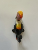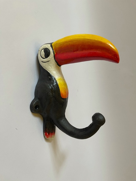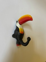 Tukan - litinový nástěnný věšák, výška 15 cm, šířka 7 cm, hloubka 11 cm, váha 0,69 kg.