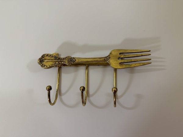 Vidlička - kovový nástěnný věšák, výška 7,5 cm, šířka 17,5 cm, váha 0,13 kg.